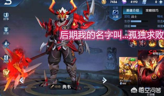 再出个宗师之力后的典韦,就真的起飞了,队友一不小心就会被他取了性命,相信很多人都被典韦主宰过,当典韦的助攻和杀人的次数越多,后期就等于多一件破军的攻击力。