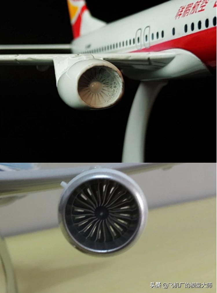 起落架,发动机,还有机身涂装印刷用的都不是同一种工艺,,下面是两者的发动机细节对比