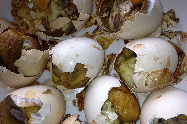 不过不同的是国内的毛蛋大多是胎死腹中的,而在菲律宾,人们将快破壳的鸭子活生生的放进锅里煮,煮好的毛蛋据说口味鲜美,反正我是不敢吃,菲律宾人是十分喜爱这道美食的。蛋虽然是一种很常见的食物,很多菜里面都能看到它,而且美味又营养。在中国的有些地方,人们也喜欢吃这道菜,不过笔者这种接受无能的人实在是不敢尝试。