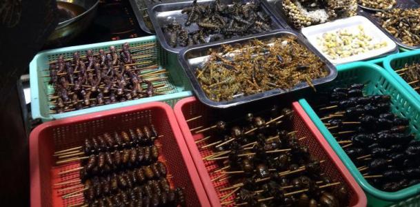 诸如蜈蚣、蜂蛹、蚂蚱、蜻蜓、竹虫……俗称“昆虫宴”。各种昆虫基本上都是采用油炸的方法来烹饪的。“别看它们长相恐怖,却是好吃又营养,还有美容去火的功效”,这是当地人的介绍,但是笔者依旧不敢尝试。