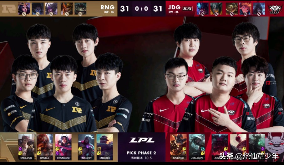 3月27日,LPL春季赛线上赛RNG首局碾压JDG拿到赛点,随后的第二局JDG为蓝色方,选到的阵容为上单鳄鱼,打野塞拉斯,中单卢锡安,辅助布隆和ADC韦鲁斯;而红色方的RNG则是是选到了上单奥恩,打野皇子,中单辛德拉,辅助泰坦和ADC女枪!