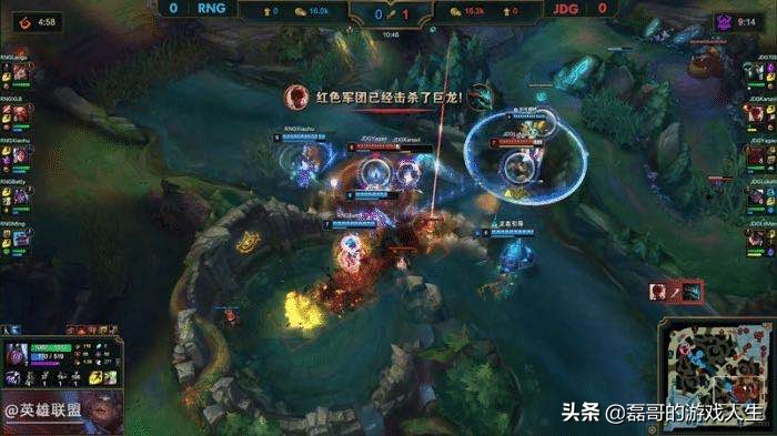 事实也跟大家在第一波龙团打完小虎拿到四杀后猜测的那样,JDG在那一波龙团之后基本上就走远了,真的小骚不太明白这个兰博选出来的意义,每次打团就是放了个大招就没作用了,而且兰博这英雄你要是经济落后的话大招也没多少伤害,最重要的是RNG这边也就只有AD可能忌惮一下兰博的大招,所以整场下来兰博就是伤害也没有,抗也扛不住,感觉就跟一个超级兵一样,真的不知道在JDG这边是怎么想的!