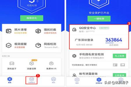 登录记录查询:在腾讯手机管家中->选择应用安全->QQ安全中心->点击“登录足迹”查询帐号近期的登录记录。