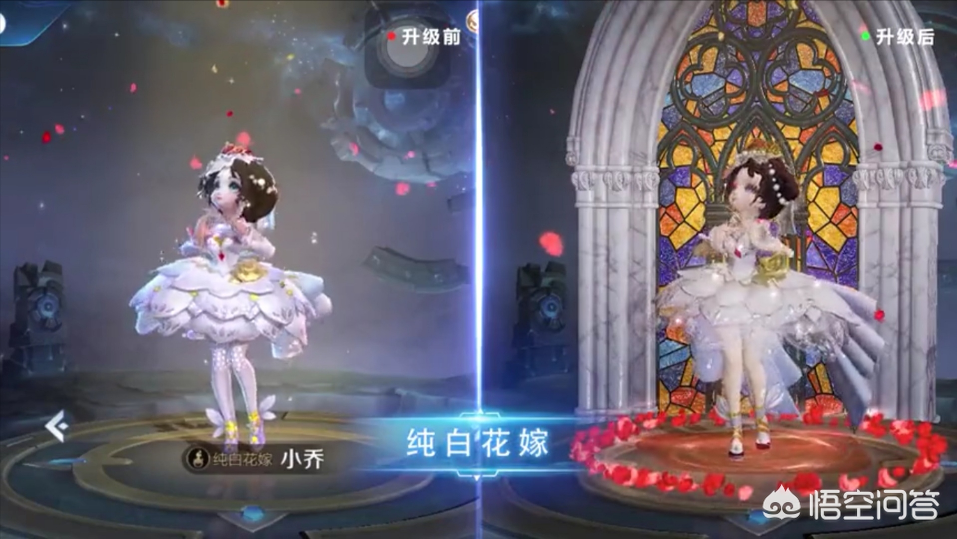 优化的第二款皮肤就是小乔的纯白花嫁,升级之前和升级之后可以说是有明显的区别,尤其是那个背景做的相当的好看,地上还铺满了花瓣,真的像是周瑜向小乔求婚一样啦,非常的甜蜜。