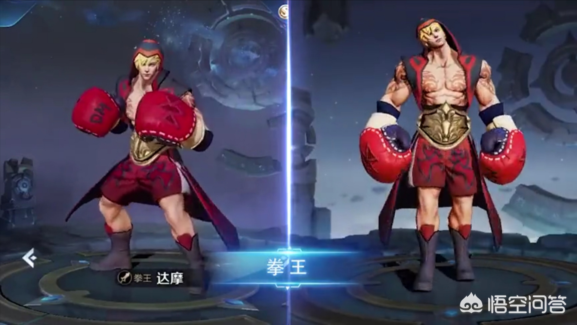 优化的第一款皮肤就是达摩的拳皇皮肤啦,这次经过优化以后,达摩拳王完全史诗品质呀,独立出场动作,语音,技能特效不只是变色,大招踢中人有个大拳套。