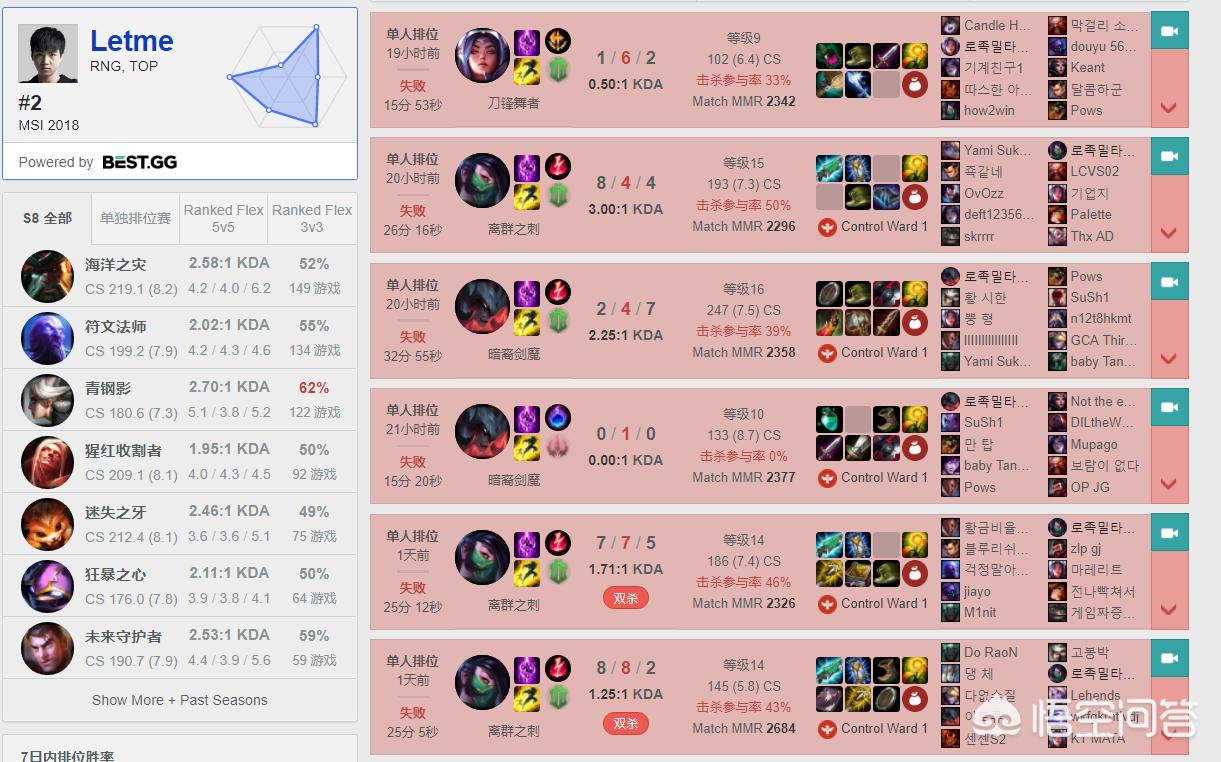 反观让男的战绩却并不亮眼,直接一波连跪,不过就算是输了,战绩除了刀妹那一局都还过的去,相信状态也不会太差。在之前他与TheShy的对线当中,letme的平等条约依旧有效,甚至还用羊单吃了theshy的纳尔,这次应该也不会有太大的变动,顶多就是谁也奈何不了谁,出现一种平稳发育的形式。
