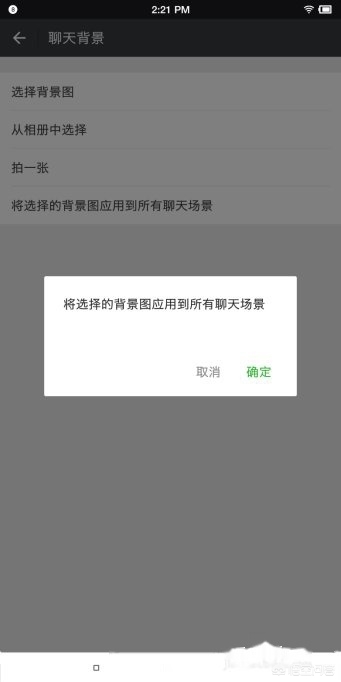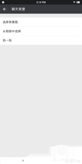 选择聊天背景,可以是系统给的图或者图库和拍摄的图片。