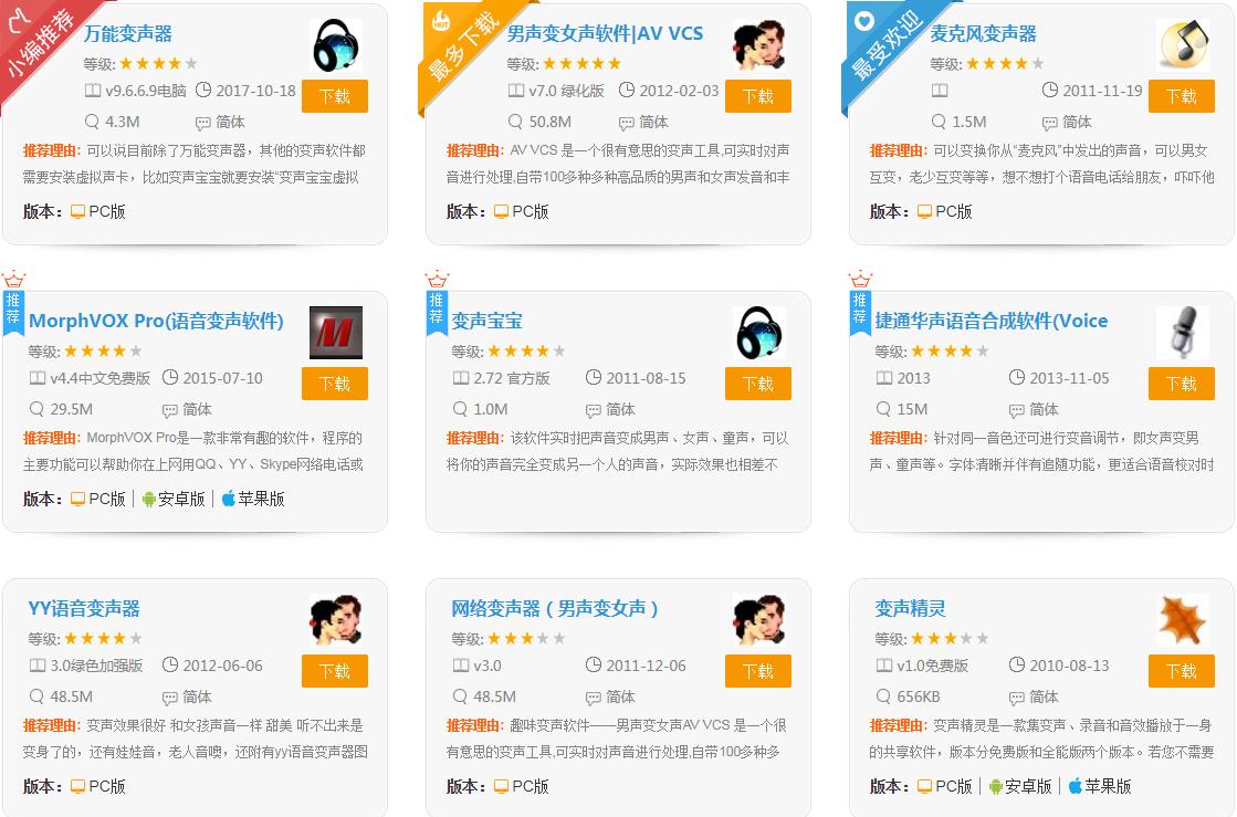 变声器软件可以将男声变成甜美的女声或者怪兽、动物及小孩的声音,在好友来电时将声音变一下来恶作剧是一件最好玩的事情啦,变声器男变女或者女变男不在话下,在愚人节或者万圣节变声软件绝对可以提高节日气氛,让你玩的超级尽兴,要说变声软件哪个好的话,在以下的软件中挑一款吧!