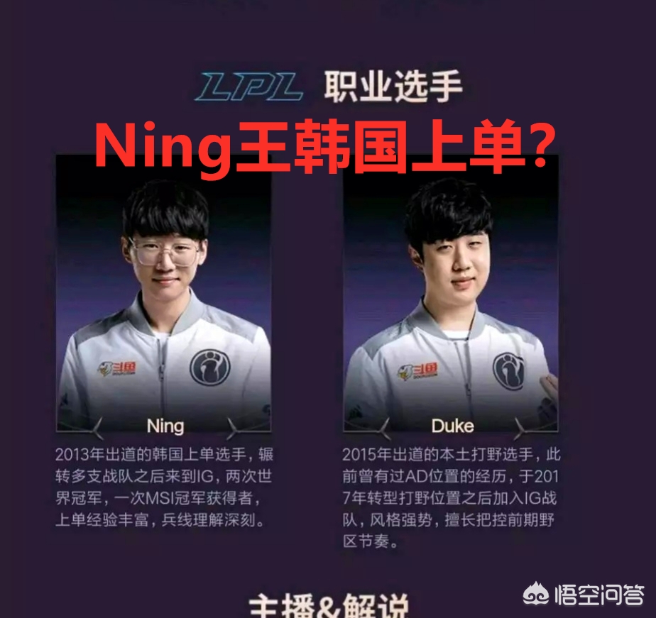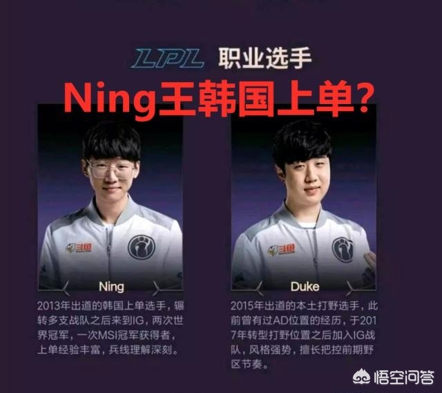 作为冠军皮肤的拥有者,IG全员一直在推销冠军皮肤,队员用直播甚至抽奖的方时推广自己的皮肤,带来了很好的效果。近日,IG全员在某平台直播,而英雄联盟官方也是顺便宣传皮肤,更是给出了IG选手的简介。但是官方出现了一个很大的失误,将打野Ning和上单Duke搞反了,将Ning介绍为韩国的强力上单选手。很多网友指责策划长点心,居然把Ning开除国籍了?