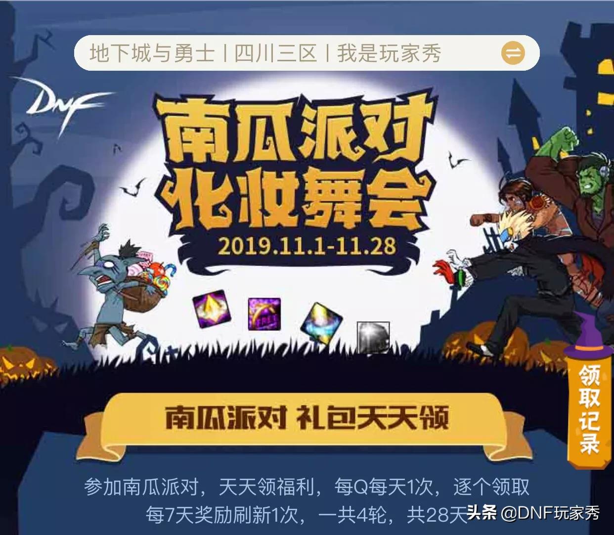DNF助手更新了新活动,只需要手机点击就送,不需要登录游戏签到,直接领取,这就是“南瓜派对化妆舞会”活动,礼包天天领!
