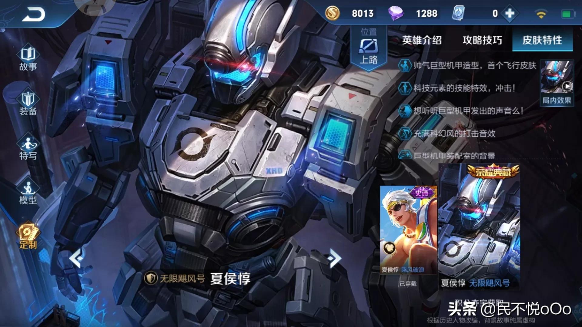 1.这款皮肤是888点券史诗皮肤中排的上号的,不管是特效、音效、语音还是手感,如果玩家主玩夏侯惇,这个皮肤直接花钱买都值得。甚至还有全背景展示,这个多是传说皮肤才有的待遇。