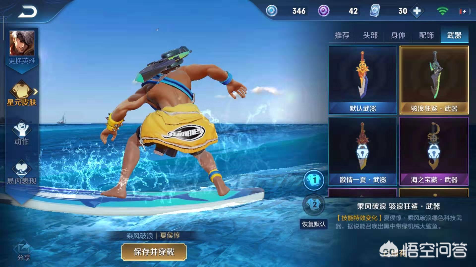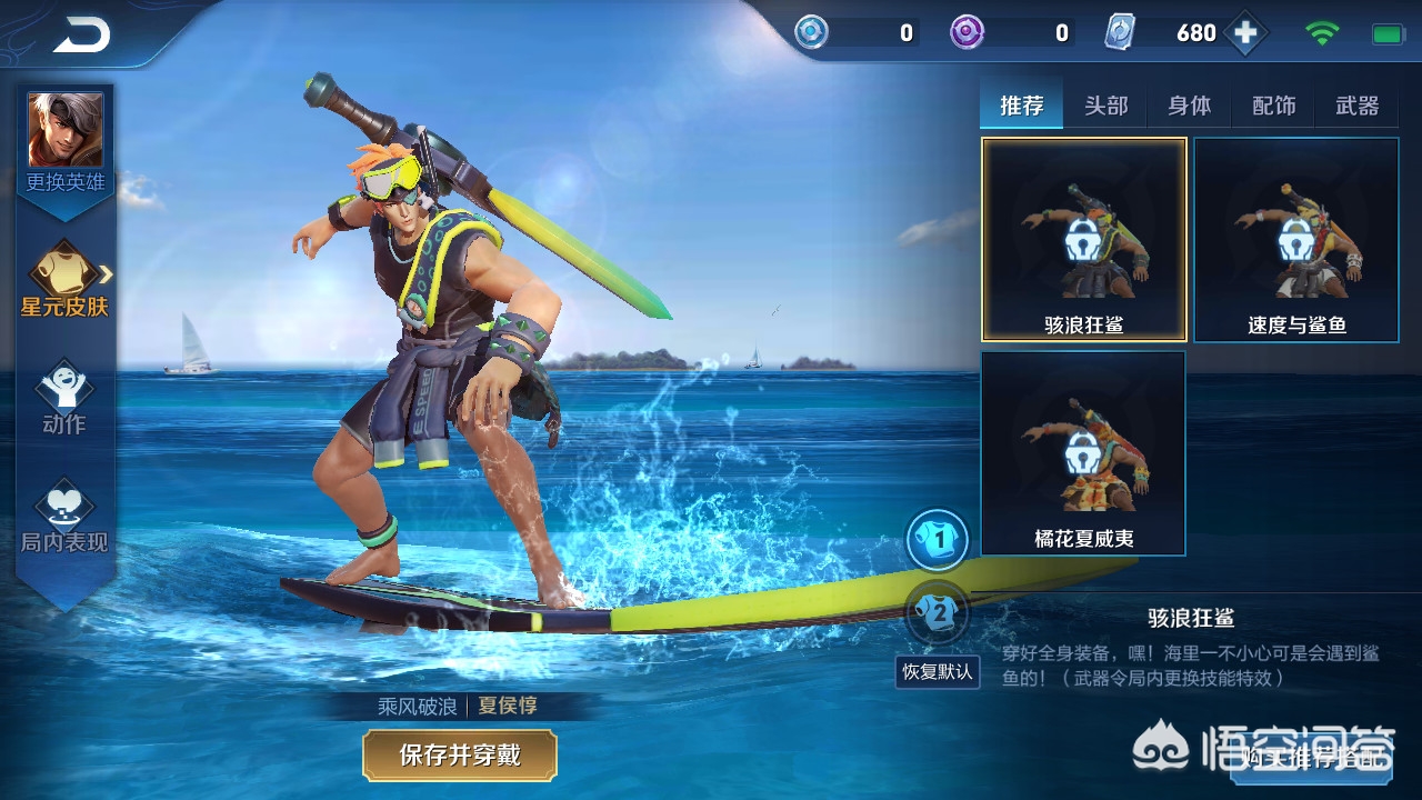 此次天美可算是良苦用心,夏候惇一次出5件套装,分别是夏海之宝藏,橘花夏威夷,霸气的速度与鲨鱼,豪放不羁的骇浪狂沙,夏天。其中夏威夷和骇浪狂沙这两款星元服装建议入手。