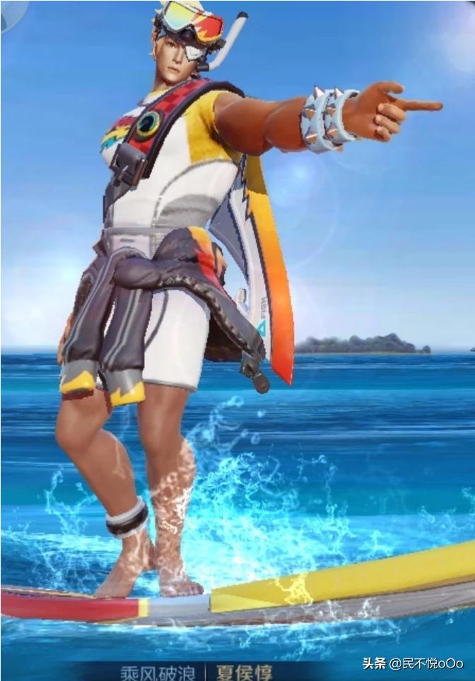 乘风破浪这款皮肤是一个夏日款皮肤,是冲浪男儿的形象,配上全新的冲浪语音,一派征服海洋的勇敢男儿形象。在技能上也是全新的海洋特效,尤其是一技能的二段控制会有一个大大的鲨鱼出现,很壮观。如果配上高等级的星元武器还会更好。