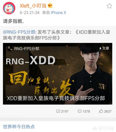 如何看待RNG战队官宣XDD正式加入皇族FPS分部