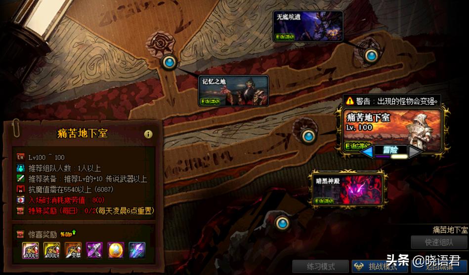 在DNF全新的100级版本之中,个人认为痛苦地下室和暗黑神殿两张地图无论从哪个方面来看都是非常完美的每日必刷副本。