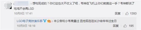 由此也让很多粉丝表示不满,纠其原因是韦神在直播中说过吃鸡不会在LGD,而现在LGD单方面宣布像是吃现成的不仗义。而LGD俱乐部表示本公告所有内容都和韦神本人沟通过的,双方争执不休。