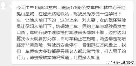就因为司机照顾了孕妇,让孕妇从前门下车,影响了这对男女占座位,一上车就发难司机,继而演变成了一场暴力攻击。不但置自己的性命于不顾,更是将全车乘客的安全视同儿戏。整整打了32拳,真不知道怎么下得去手,这比前两天抢占座位的那位铜铃中年男更加令人惊骇!我就想说,即使没有座位,你年纪轻轻的站一会儿又怎么了?可以暴击司机32拳,说明浑身还有使不完的力气。