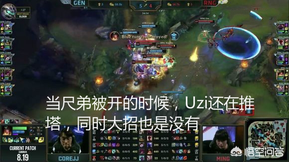 RNG战胜GEN的最后一波团战,Uzi没有大招没有输出,是怎么混到尺帝助攻的