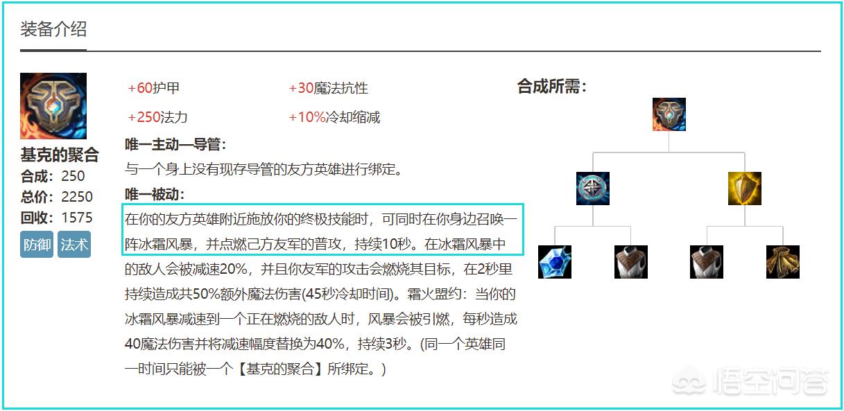 目前的解释只有一个,那就是Ming当时出的那件装备:基克的聚合。首先来看一下着一件装备的被动特效,关联一个队友,当这名队友在附近时自己释放大招时会触发冰霜风暴,而冰霜风暴会点燃目标英雄,并且还能继续处罚霜火盟约,每秒造成一定的伤害,但是这件装备和Uzi有什么关系呢?注意看这件装备的被动触发条件:友方英雄在附近,也就是Uzi在附近的时候被动才会触发,所以Uzi成了这件装备触发效果时的一个催化剂,给到助攻也就无可厚非了。
