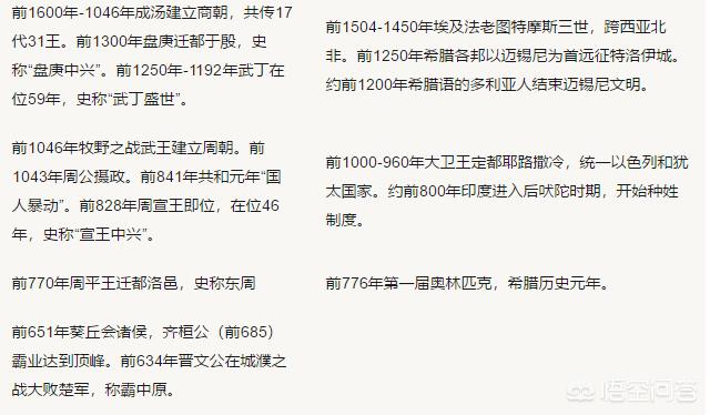 同样地,如果你对西方历史感兴趣那就以西方为主线在找出与它时间大致相同的中国王朝,这样假以时日整个中西历史就很快印在你脑中了。