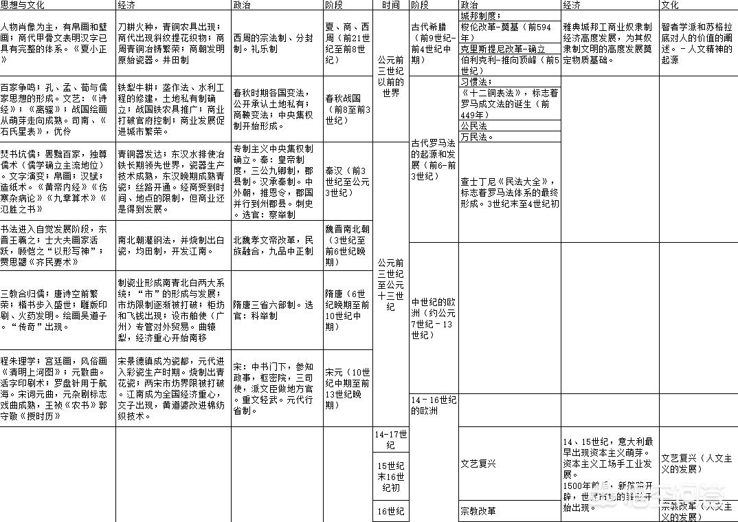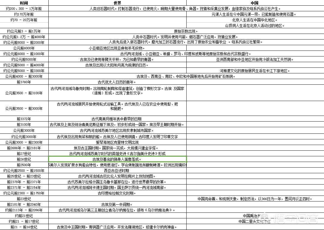 其次,如果你是个人需要学习的话,很多excel版本的历史对比表用起来会非常顺手,如果你发现其中某一个环节缺失还可以顺手更改,非常有用。如果你是为了学习,那么这种表格对你来说绝对有用,比图文版或文字版的对比更加逻辑清晰,能够让你快速掌握历史的发展脉络。