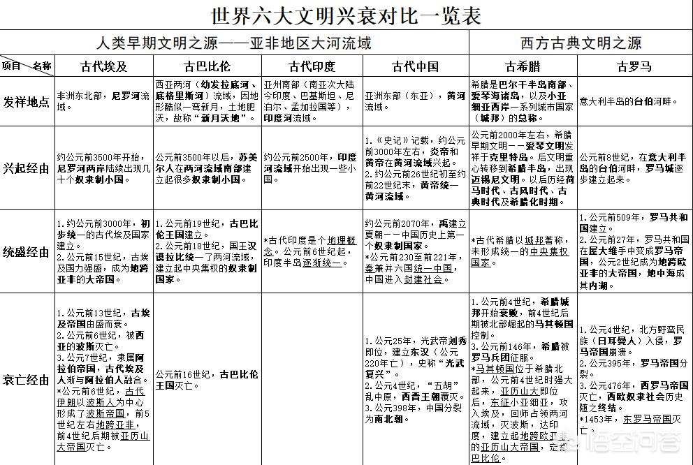 这是世界文明兴衰对比表的局部。