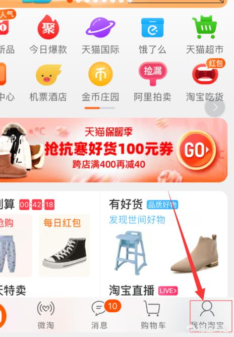 1、打开淘宝后,点击页面下方“我的淘宝”,如图所示。