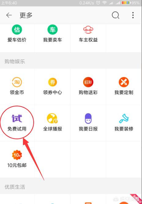 3、进入后找到购物娱乐中的“免费使用”,如图所示。