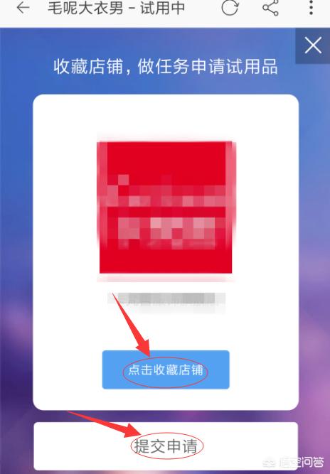 6、之后根据店铺要求做任务,选择“点击收藏店铺”后,点击“提交申请”,如图所示。