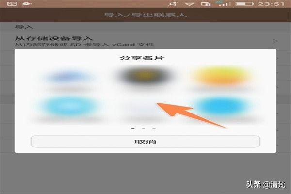 然后在弹出的框里面,选择一种用来分享名片的方式就可以了,这样,就可以把手机电话号码导出存放到其它地方。