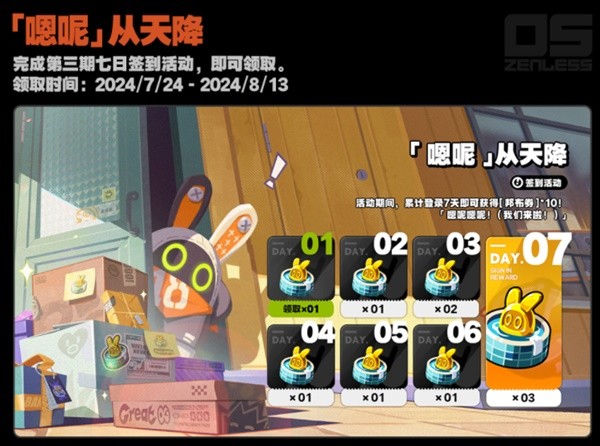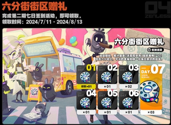 六分街街区赠礼活动(签到送10连)开启,连续签到7天又可获得10个加密母带!好耶!