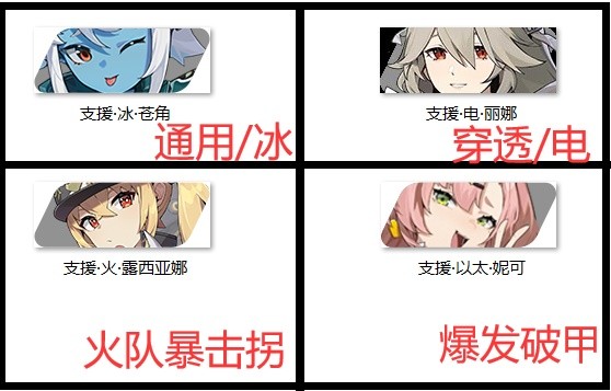 所以我们结合上图,在公测后根据自己抽到的强攻角色来选择合适自己的配队即可!