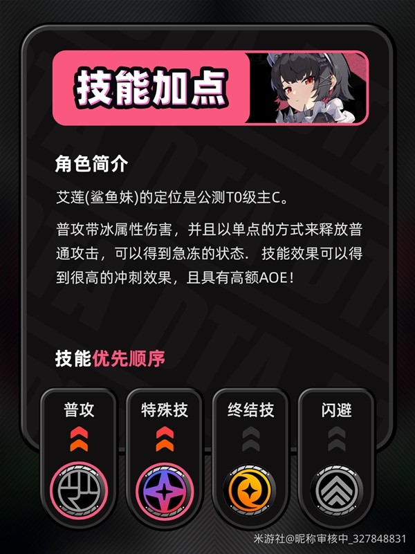 艾莲(鲨鱼妹)的定位是公测T0级主C。