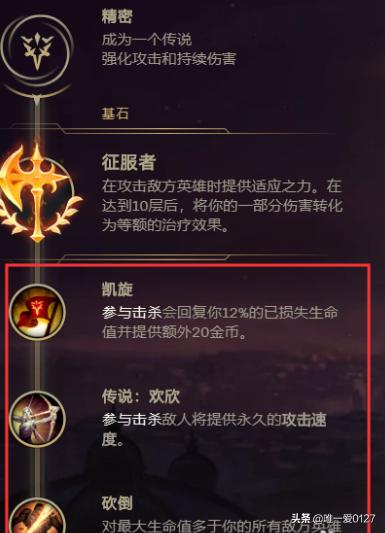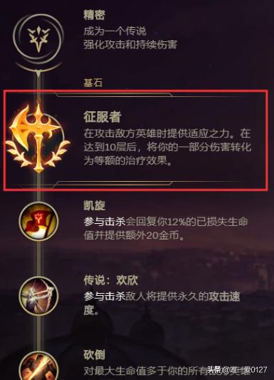 2,然后点击征服者,征服者的被动配合剑魔的吸血,可提高剑魔在对线上的赖线能力。
