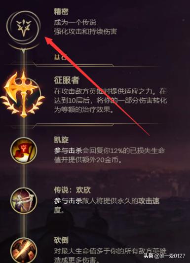 1,首先,主系符文点击精密,精密强化攻击且达到一个持续伤害效果。配合剑魔的QWE穿插普攻可打出一套爆发伤害。