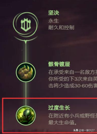 6,最后点击过度生长,顾名思义,这个符文的效果可以永久提升剑魔的最大生命值。