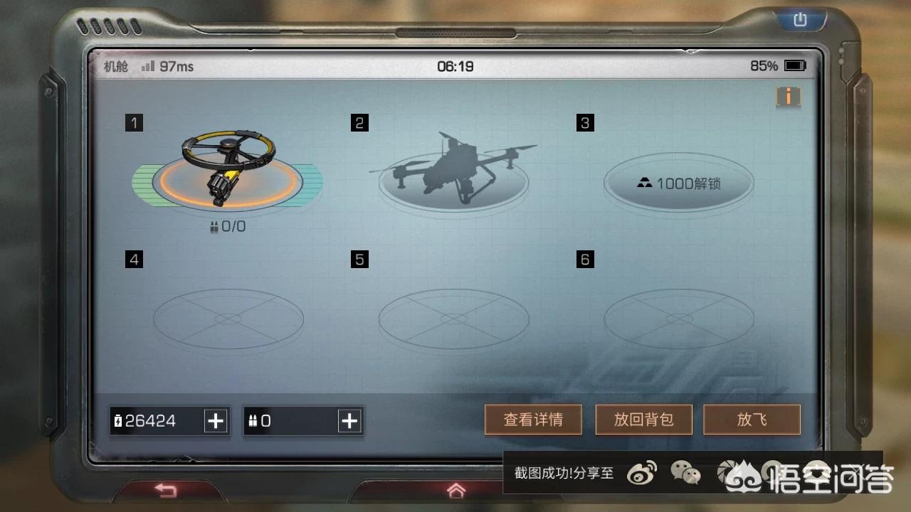 做好零件后你就直接模块组装,然后领取无人机后在背包里点击一下无人机后有个“放入机舱”的按键,放入机舱。机舱就是那个地图左下角的长得是无人机的按键,点开它,你就发现你原来的无人机在里边,想放出来就点击放飞,想弄回背包里炫耀就点放回背包。