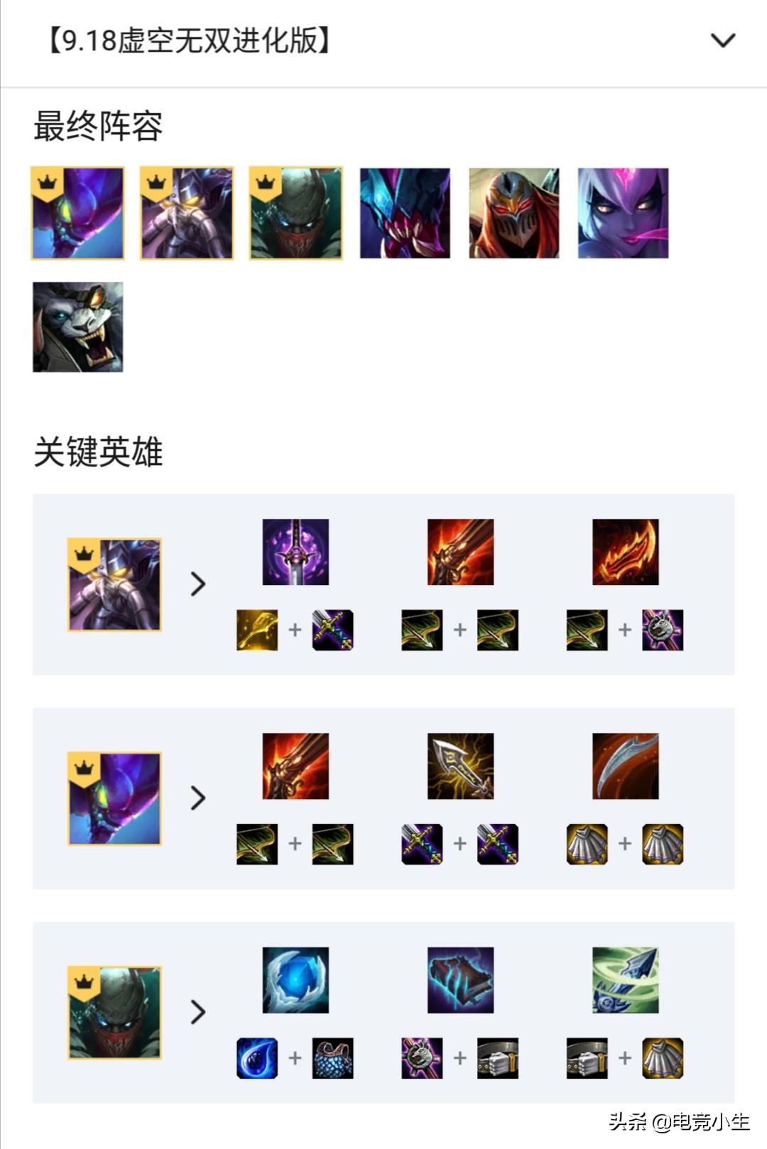 在之前的几个版本当中其实都是出现着一家独大的情况,比如早期的无脑恶魔搭配剑魔,后来的无脑虚空不管是虚空斗刺还是虚空斗法都是类似的思路。在这个版本当中其实情况是稍微好一些的,除了虚空依旧强势之外很多其他的阵容也都可以玩了。