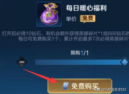 登录游戏,点击左上角的“商城”图标。进入商城后点击“特惠”,进入特惠页面点击“限购”,在限购界面免费购买“每日暖心福利”。