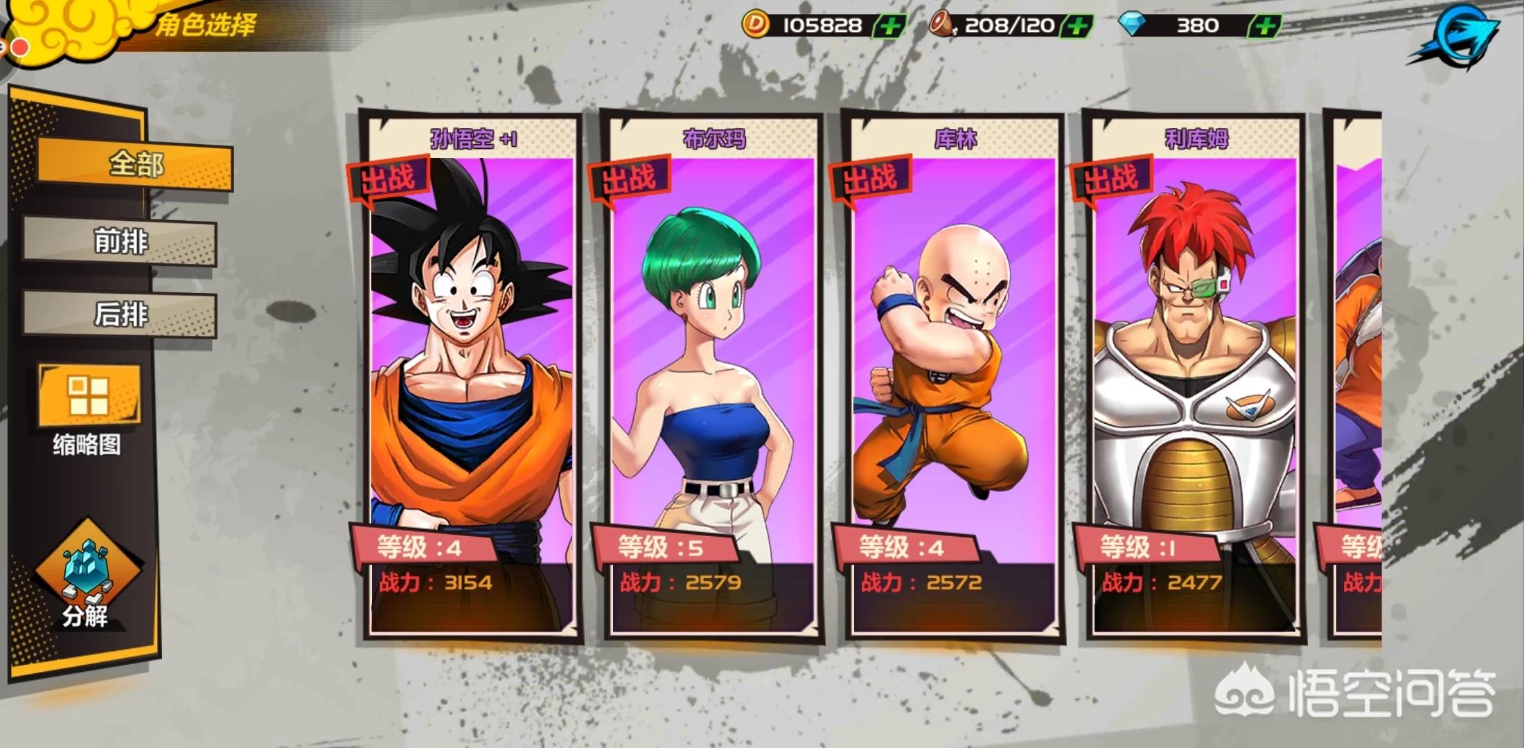 后排给首充得到的18号和布尔玛。悟饭可以先放置一边。