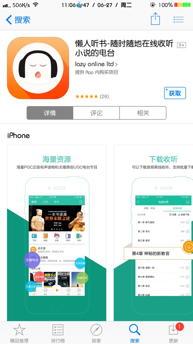 1、懒人听书:全球最大的中文有声读物交流平台,提供有声小说、戏曲、评书、儿歌、广播剧等有声读物和网络电台节目免费收听,是国内领先主播和听友交流社区。我早期用过的听书APP。内容还不错。