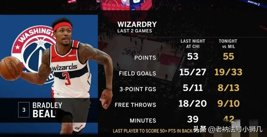 奇才原本拥有后场双枪,因为沃尔伤退,比尔扛起了球队的进攻大旗。