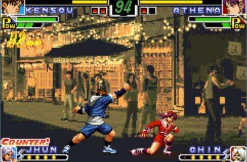 看图大家还以为是街机版吧?其实这真的是GBA版哦,GBA上面的拳皇移植度之高真的让人惊叹,画面看不出多少缩水的地方,人物也不少,招数更是不会少,最关键的,手感竟然也还原了,和街机版并没有什么差别,而且里面还有原创角色,可是呢,GBA需要用的是AB和LR键,键位可能是GBA拳皇最大的问题了,其他方面一点槽点都没有,这种对打游戏自然是支持对战的,和朋友对打非常刺激哦,里面的连招非常正统。