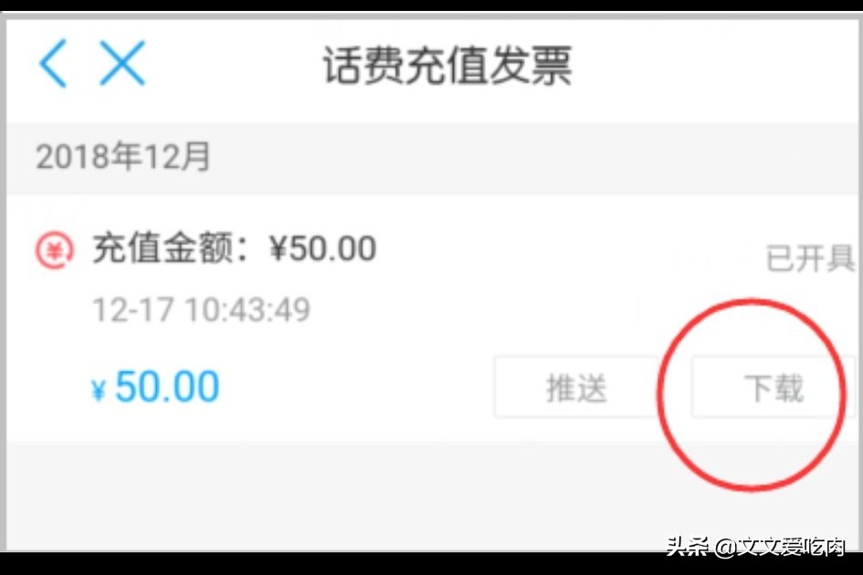 7、即可开具充值发票,点击下载,将发票下载到手机存储中。