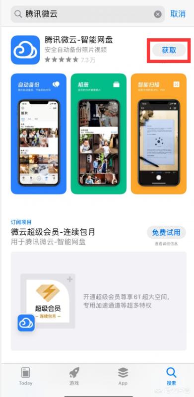 4、然后点击腾讯微云app后方的获取,然后就会开始自动下载安装。