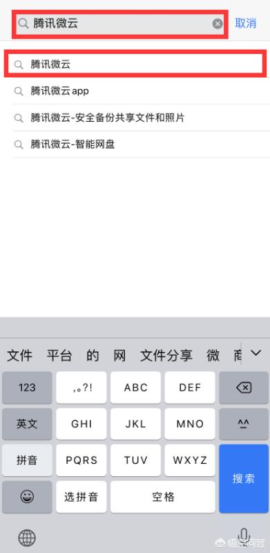 3、接着在其中输入“腾讯微云”,然后点击下方的相同选项。
