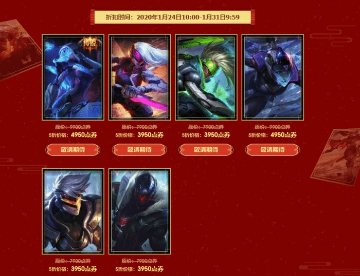 前言:英雄联盟作为一款已经运营了十年之久的游戏,已经有了非常多的玩家和粉丝,随着游戏的逐渐发展,官方也开始大力的推出新的皮肤,毕竟英雄联盟的主要收入就是依靠着皮肤的销售,就在最近一段时间里,英雄联盟的皮肤也是突破了1000大关,现在的皮肤制作越来越精美,售价也是越来越高,就在最近官方也是举办了新的活动。20多款t1级别的皮肤都半价了,很多玩家也是纷纷表示砸锅卖铁都要买起来!