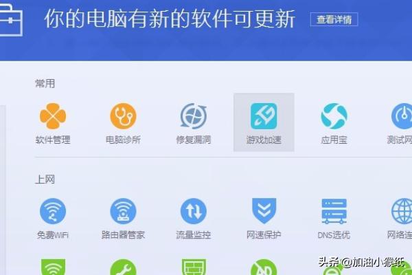 1、如果说自己网速本身就不快的话,还有一个更好的办法,就是在电脑上安装个电脑管家,然后打开其工具箱中的【游戏加速】功能;