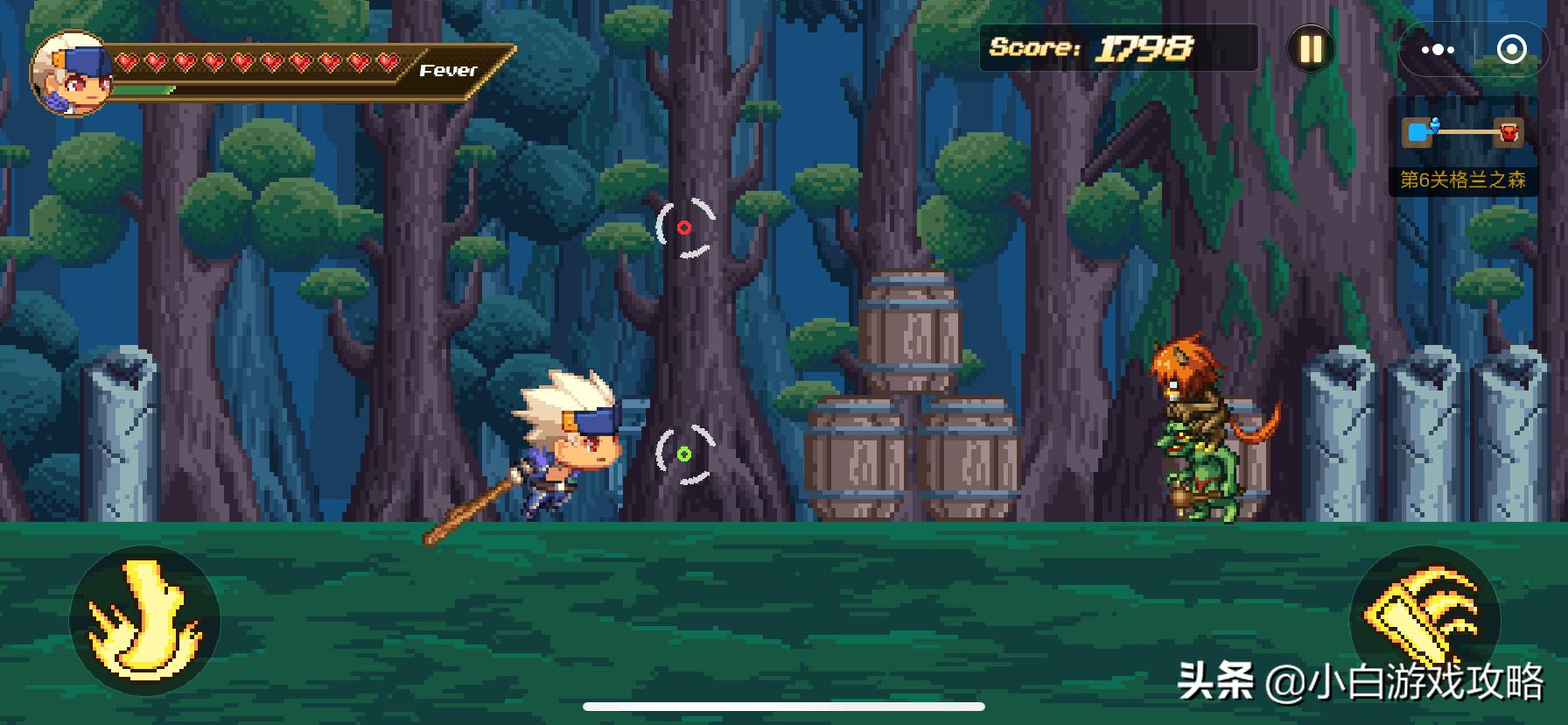 当你面对两个怪物同时到来的时候,那你就必须同时按下键,这样你就可以同时打击。如果你时间把握的不正确,或者是本来是打上你却打了下,那你的血量就会少一颗,你越是乱了阵脚那你就越会错误,所以玩这个就需要冷静~