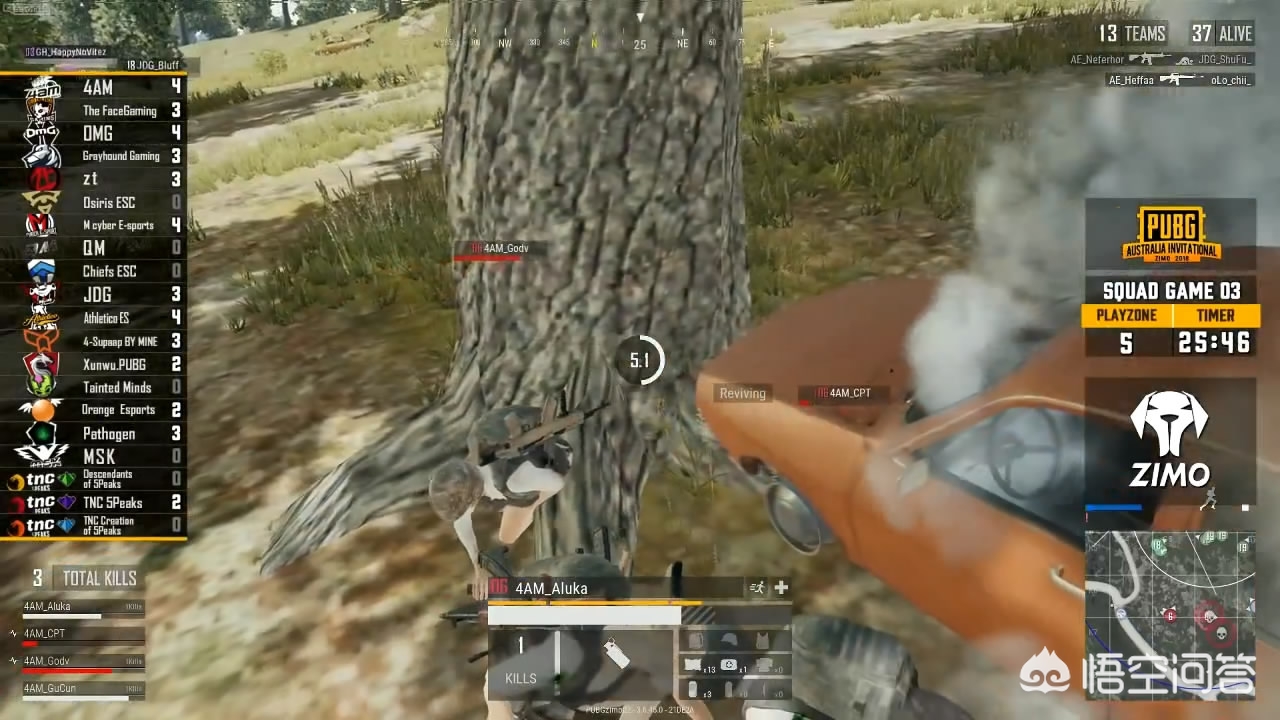 位于南面的4AM,因为白圈不断的往北面变动,使得处于毒边的他们要面临巨大的障碍向安全区内进发,激战之后,Aluka回来扶人,但这个时候毒圈已经开始移动了。因为是决赛阶段,救起来也来不及打包,又逢天谴圈,延误进圈时机。